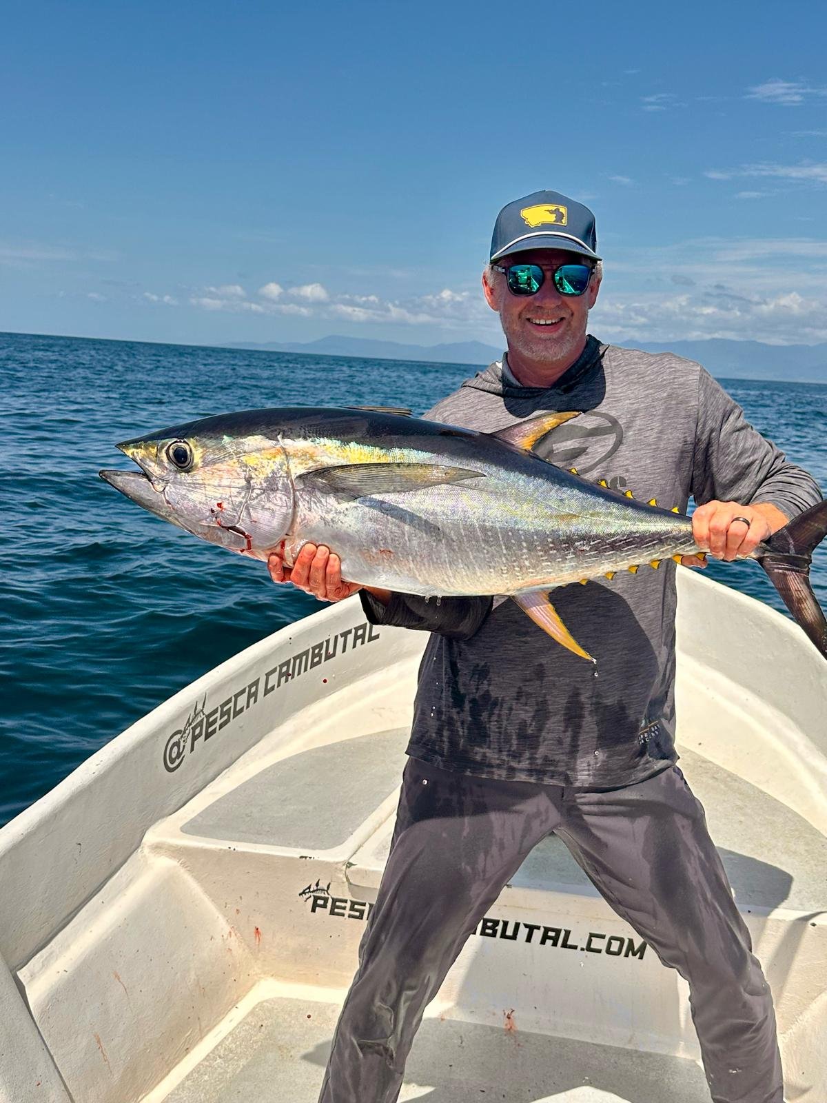 Atún aleta amarilla, conocido internacionalmente como yellowfin tuna, es un gigante de los mares tropicales. Este pez pelágico posee un cuerpo hidrodinámico y una aleta dorsal y anal con filamentos amarillos distintivos. En Panamá se le llama también albacora y es muy valorado tanto por su carne sabrosa como por la intensidad de sus combates.